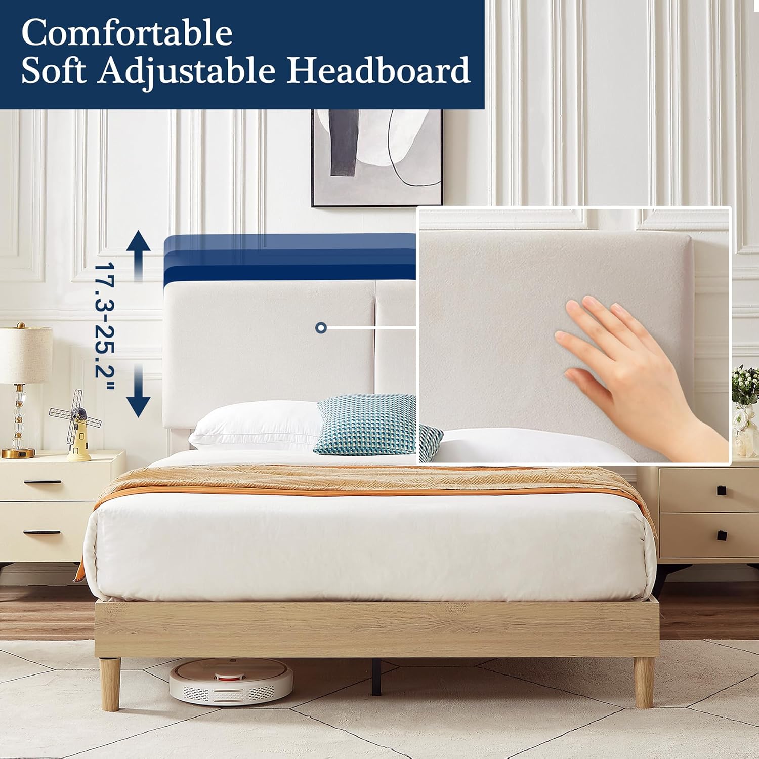 【Quick Assembly】The beige beds with headboard ships in one box and is easy to follow the simple assembly instruction with no special tools required. The process is straightforward and hassle-free, you can set it up in no time.