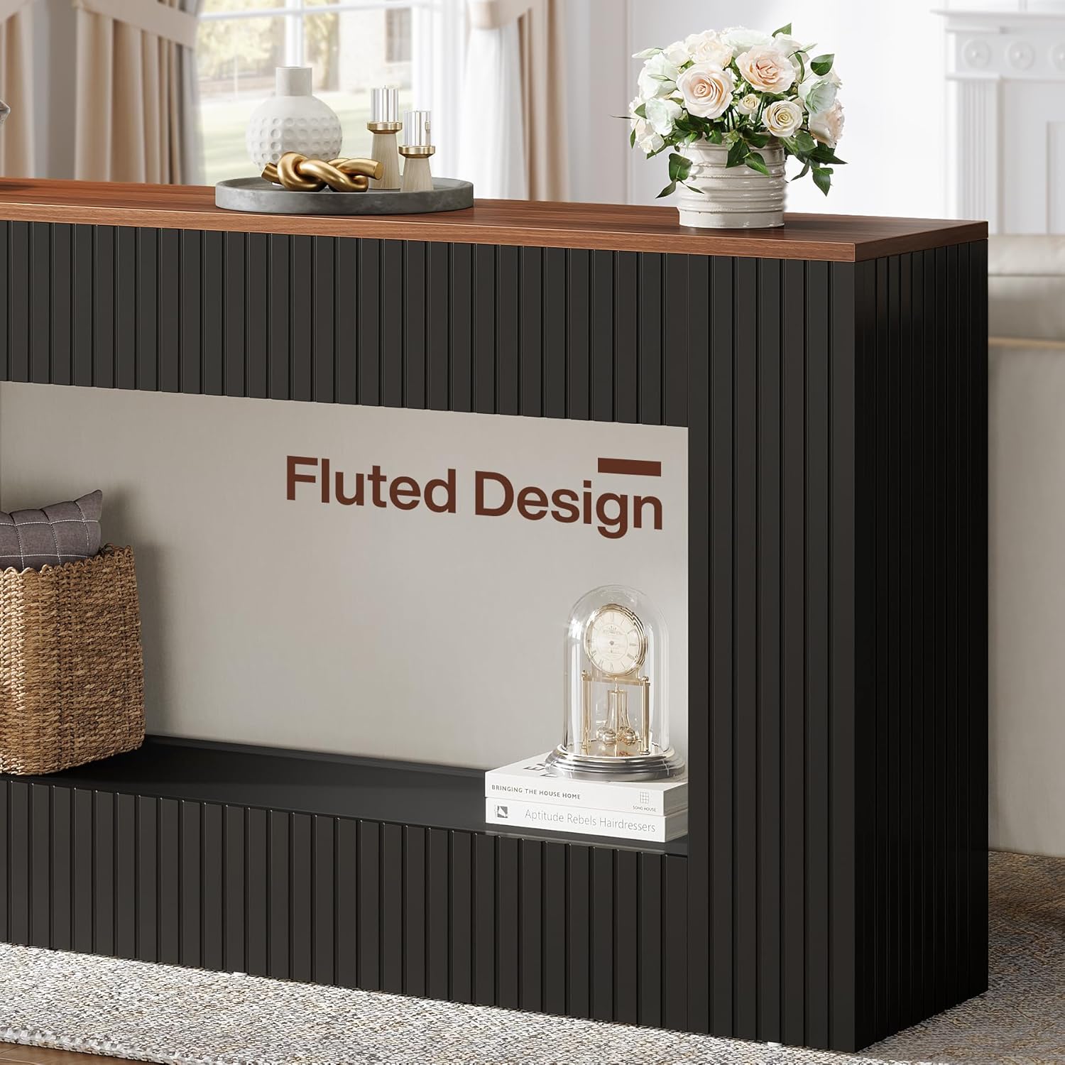 Sleek Modern Charm: With its striking black fluted body and contrasting walnut-finished top, this entryway console table exudes a modern minimalist charm, making it an ideal choice to elevate the aesthetic of contemporary home decor