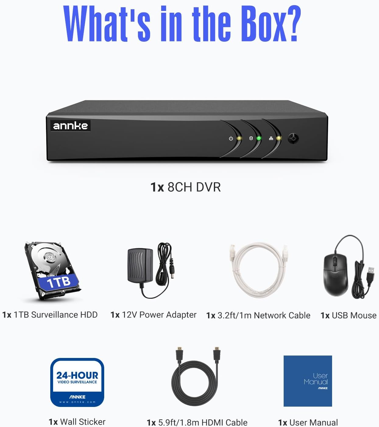 ANNKE 3K Lite 8 Channel Hybrid 5-in-1 Security Digital Video Recorder, H.265+ Surveillance DVR Supports 8CH Analog and 2CH 6MP IP Cameras, Remote Access, AI Human&Vehicle Detection, 1TB Hard Drive