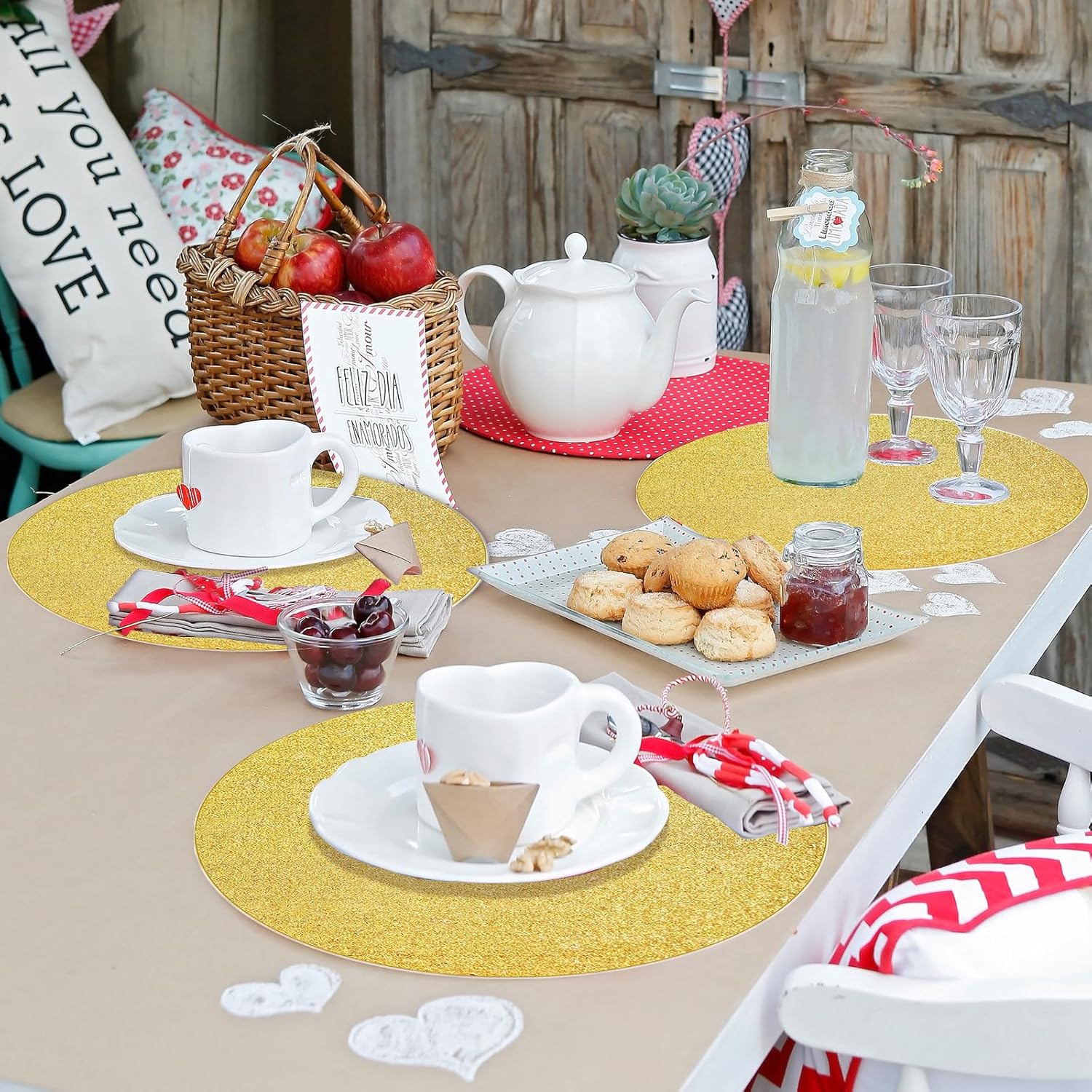 Easy Cleanup: For the problem of post-party cleanup, with gold placemats round you only need to collect and recycle! The disposable design reduces scrubbing or stain removal, giving you time to spend quality time with your guests