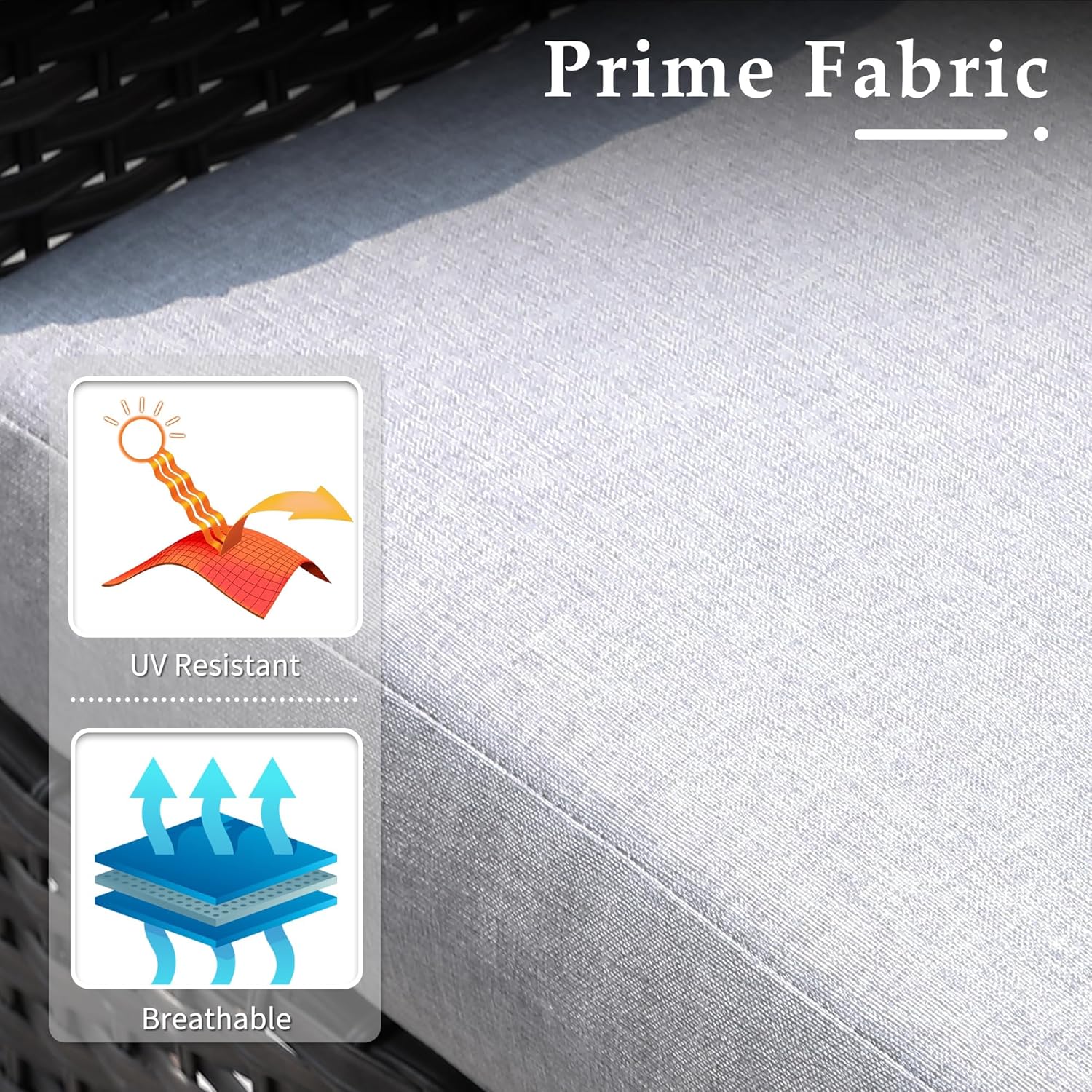 Non-Fading Fabric:3-Year-Non-Fading,made with high-density foam that is soft and supportive, and covered with a breathable fabric that is easy to clean and maintain. The cushion covers are also water resistance, stain-resistant, ensuring they remain in excellent condition in all weather conditions
