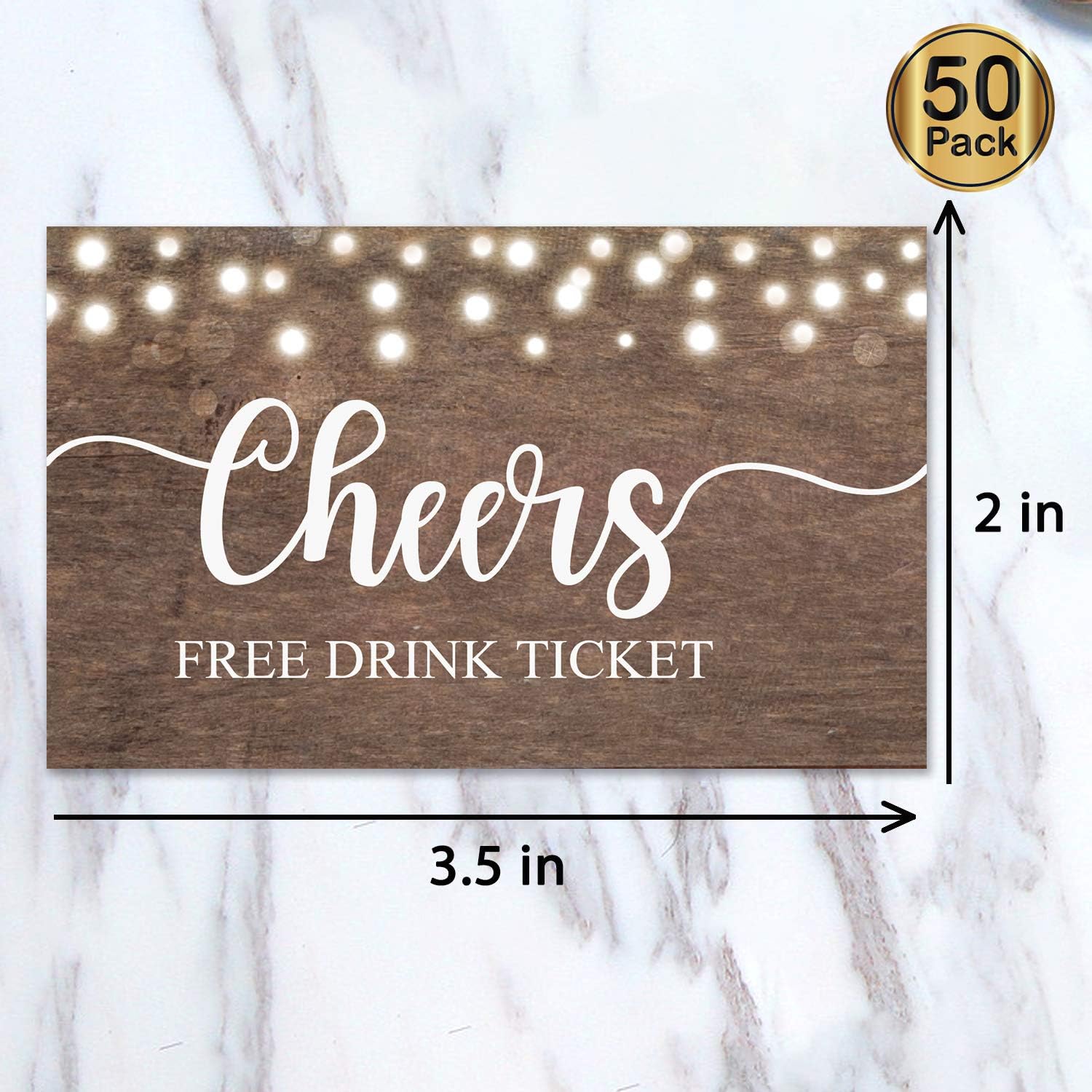 50 Free Drink Tickets, Cheers Tickets, Rustic Drink Ticket Coupons for a Free Drink at Weddings, Work Events or Party, Drink Tickets for Events, Free Drink Tickets for Soft Drink or Food Vouchers.