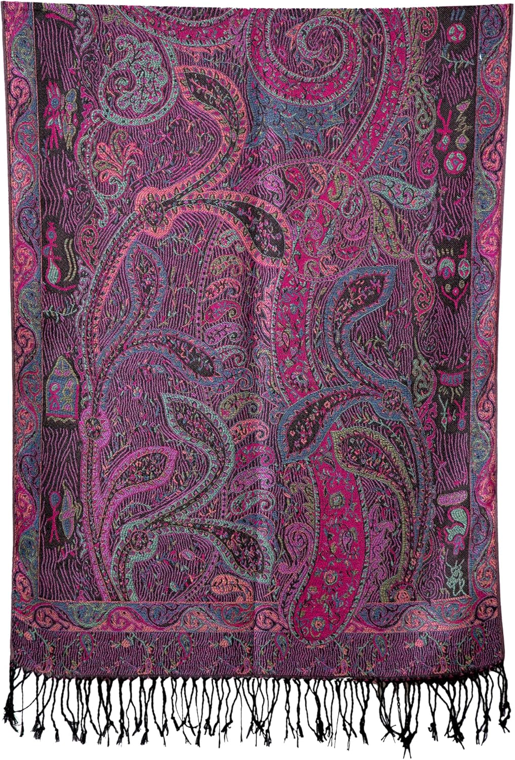 Achillea Reversible Paisley Pashmina Rave Scarf, Shawls and Wraps for Evening Dresses, Exotic Indian Scarves for All Season