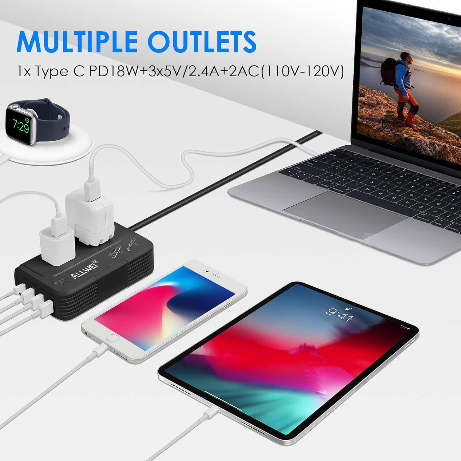 ✈【WHAT YOU GET】ALLWEI Universal Travel Adapter, Include 5 feet detachable US power cable and 5 International adapters, storage bag,user manual, 18 months warranty and 100% customer service.