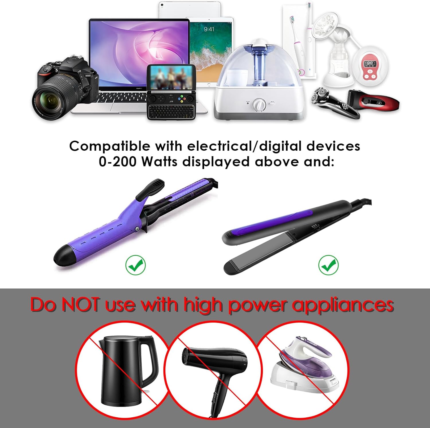 ✈【Patented product with Patent number: US10270355B1, it has New Feature: This upgraded version WORKS PERFECTLY for Hair Straightener and Hair Curling Iron】The International Travel Adapter can work with appliances under 230 Watt such as Electrical shaver/hair cutter, Electrical toothbrush, fan, nebulizer, game console, Kindle, Laptop, Mobile phones, etc.