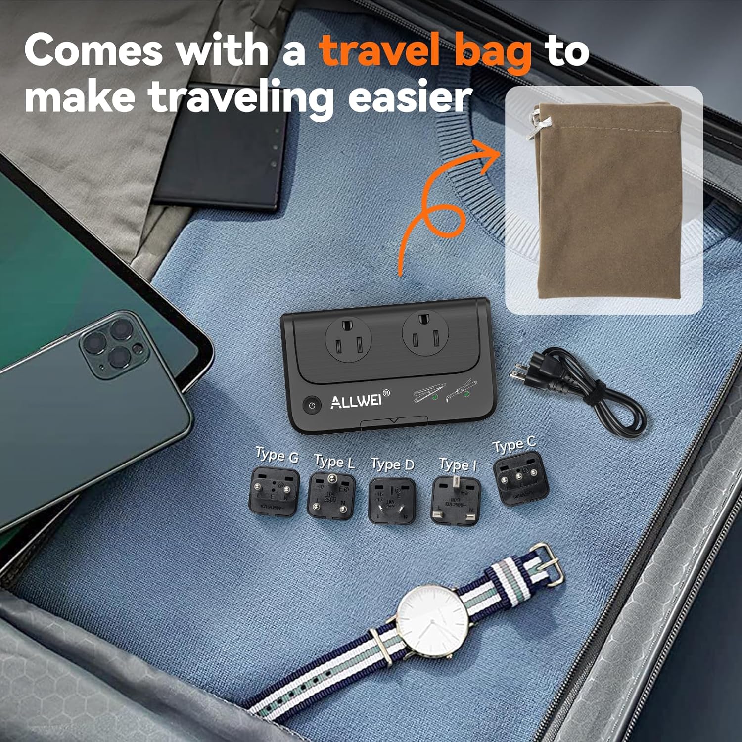 ALLWEI Travel Voltage Converter 220V to 110V Power International Travel Adapter for Hair Straightener/Curling Iron, Universal Power Plug Adapter UK, US, AU, EU, IT, India (Black)