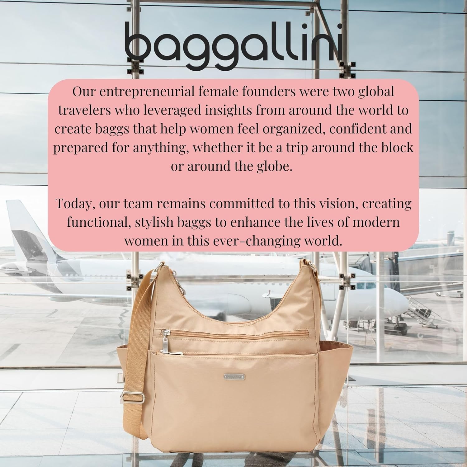 Baggallini Essential Hobo 11×9 Lightweight Travel Purse Handbag Crossbody Bag for Women Washable Nylon W/RFID Protection