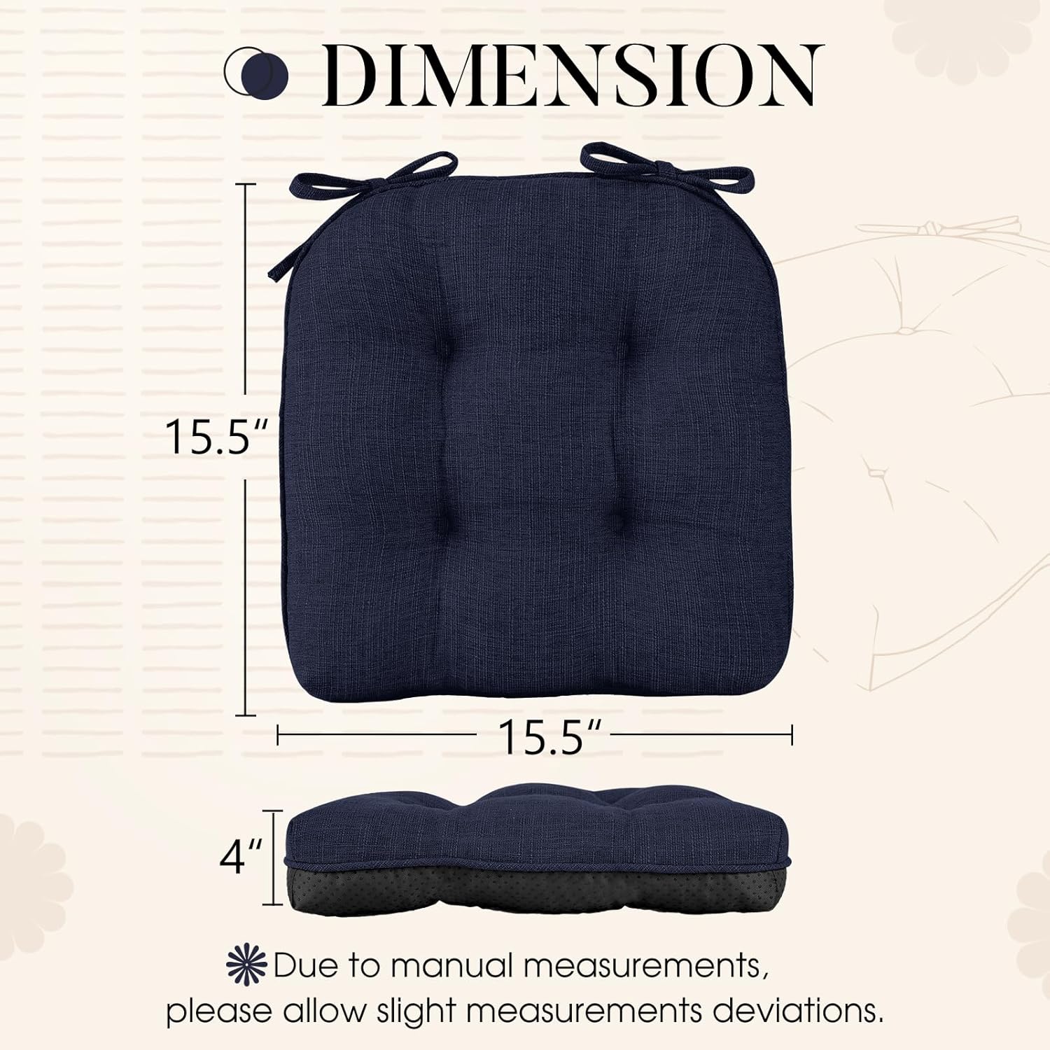 Basic Beyond Chair Cushions for Dining Chairs 4 Pack, Chair Cushion with Ties and Non Slip Backing, 15.5 x 15.5 inches Tufted Kitchen Chair Pads for Dining Chairs(Navy)