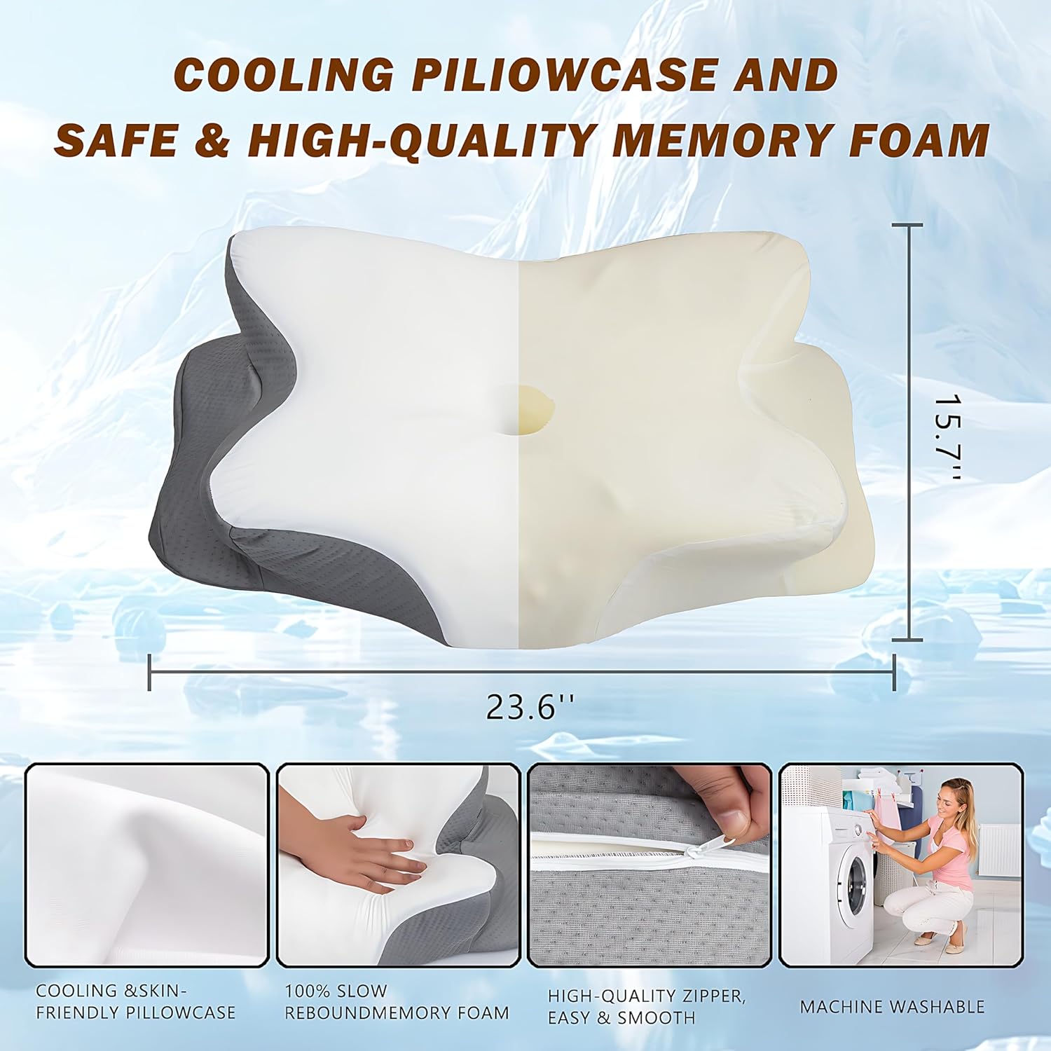 【DURABLE MEMORY FOAM】 Made from high-quality resilient memory foam, the Cervical Neck Pillow conforms to the natural curve of your neck and shoulders, providing superior comfort and support. The high-density memory foam helps to distribute weight evenly, relieving pressure on sensitive areas such as the neck, shoulders, and hands, thereby reducing muscle tension and improving sleep quality.
