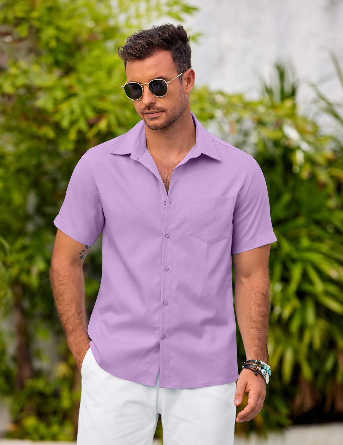 COOFANDY Mens Button Down Short Sleeve Shirt Casual Textured Shirts Summer Beach Shirts with Pocket