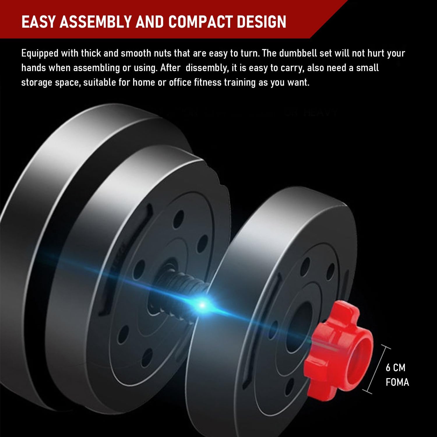 EASY ASSAMBLY AND COMPACT DESIGN | Equipped with thick and smooth nuts that are easy to turn. The dumbbell set will not hurt your hands when assembling or using. After disassembly, it is easy to carry, also need a small storage space, suitable for home or office fitness training as you want.