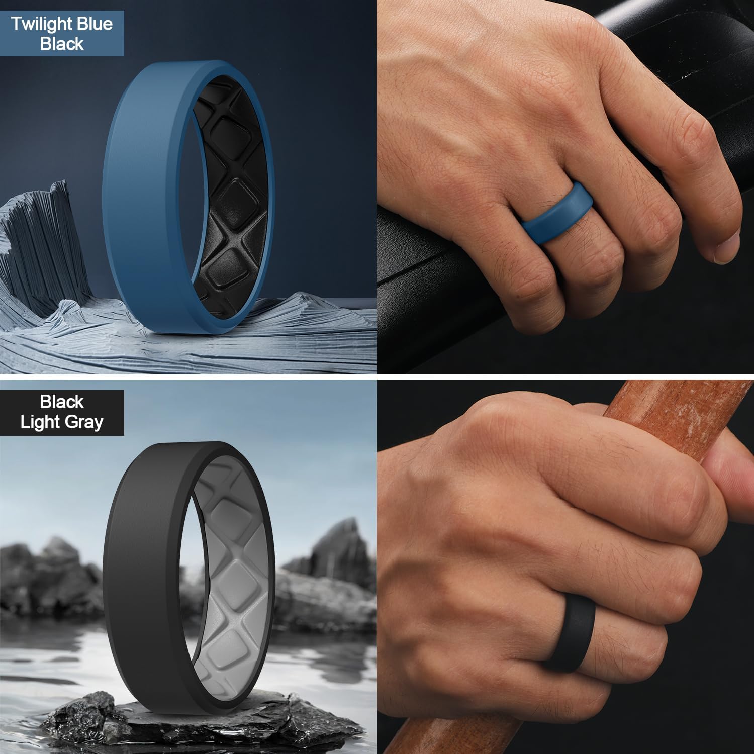 Egnaro Men’s Silicone Rings, 7.5mm Wide 2.5mm Thick Rubber Bands For Him, Ergonomic Beveled Edge Two Tone Waterproof Workout Accessories