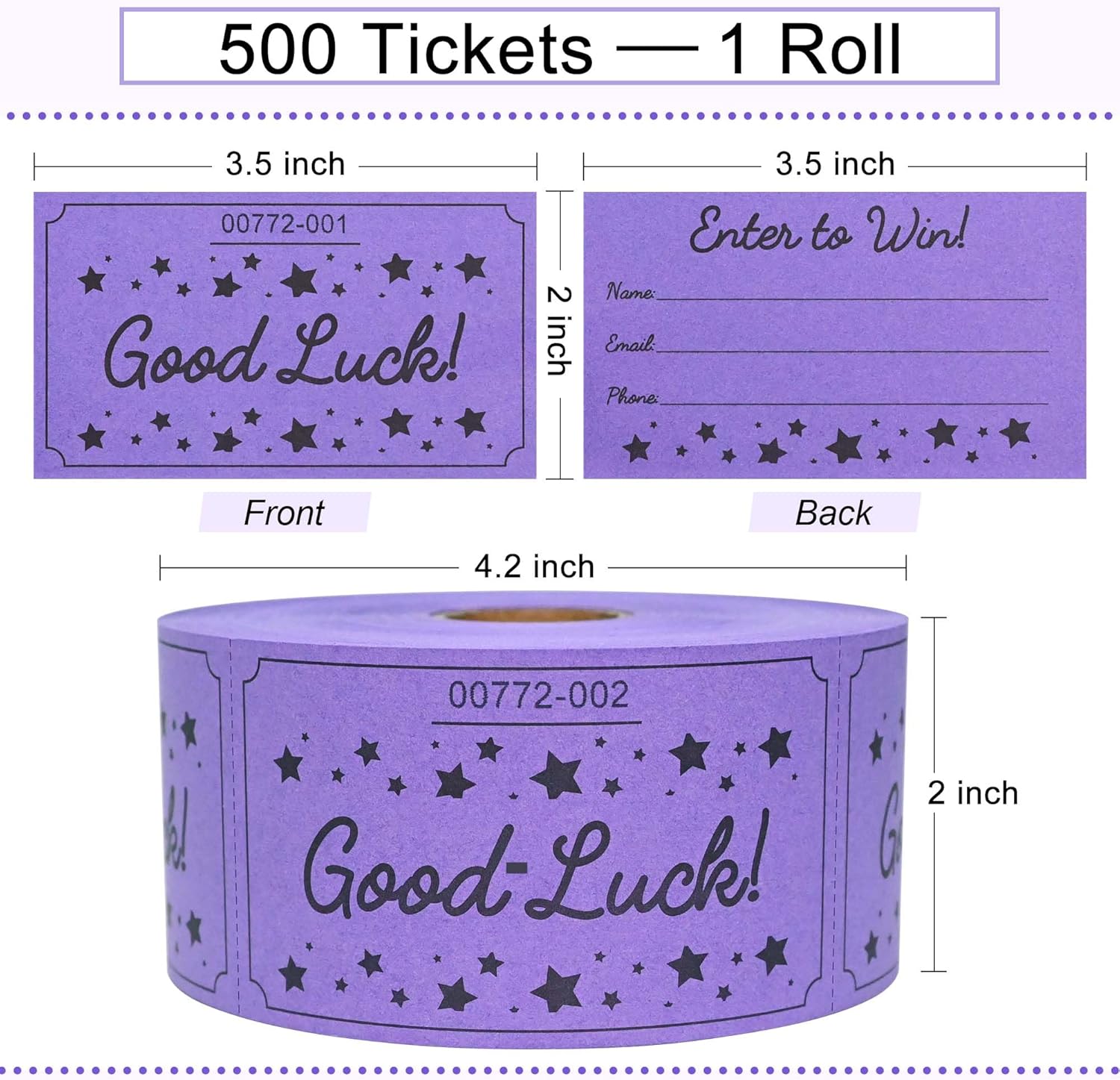 ESSENTIAL 500 Raffle Tickets, Good Luck Raffle Cards, Entry Form with Name, Phone & Email for Raffle, Events, Entry, Class Reward & Door Prize – 5 Color Selection (Purple)