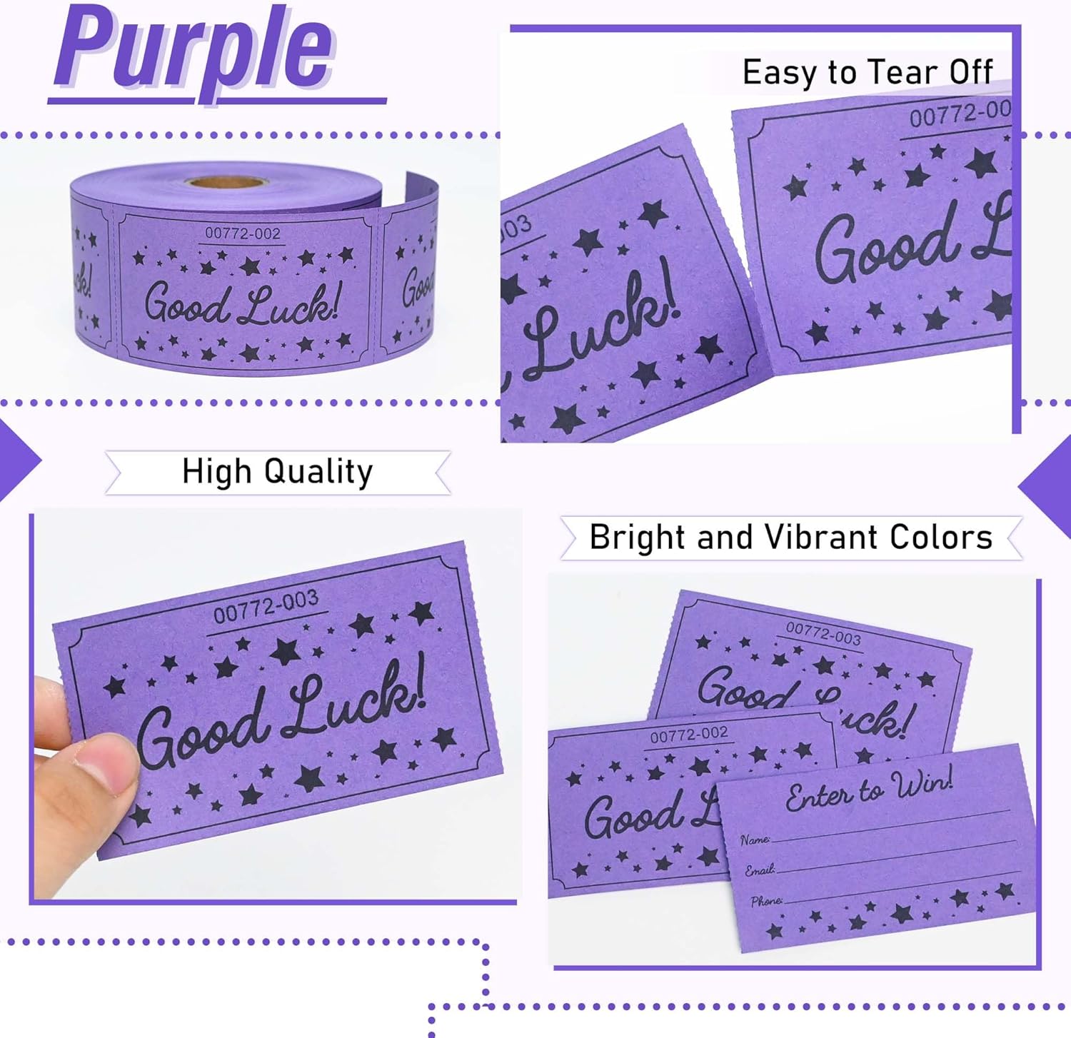 ESSENTIAL 500 Raffle Tickets, Good Luck Raffle Cards, Entry Form with Name, Phone & Email for Raffle, Events, Entry, Class Reward & Door Prize – 5 Color Selection (Purple)