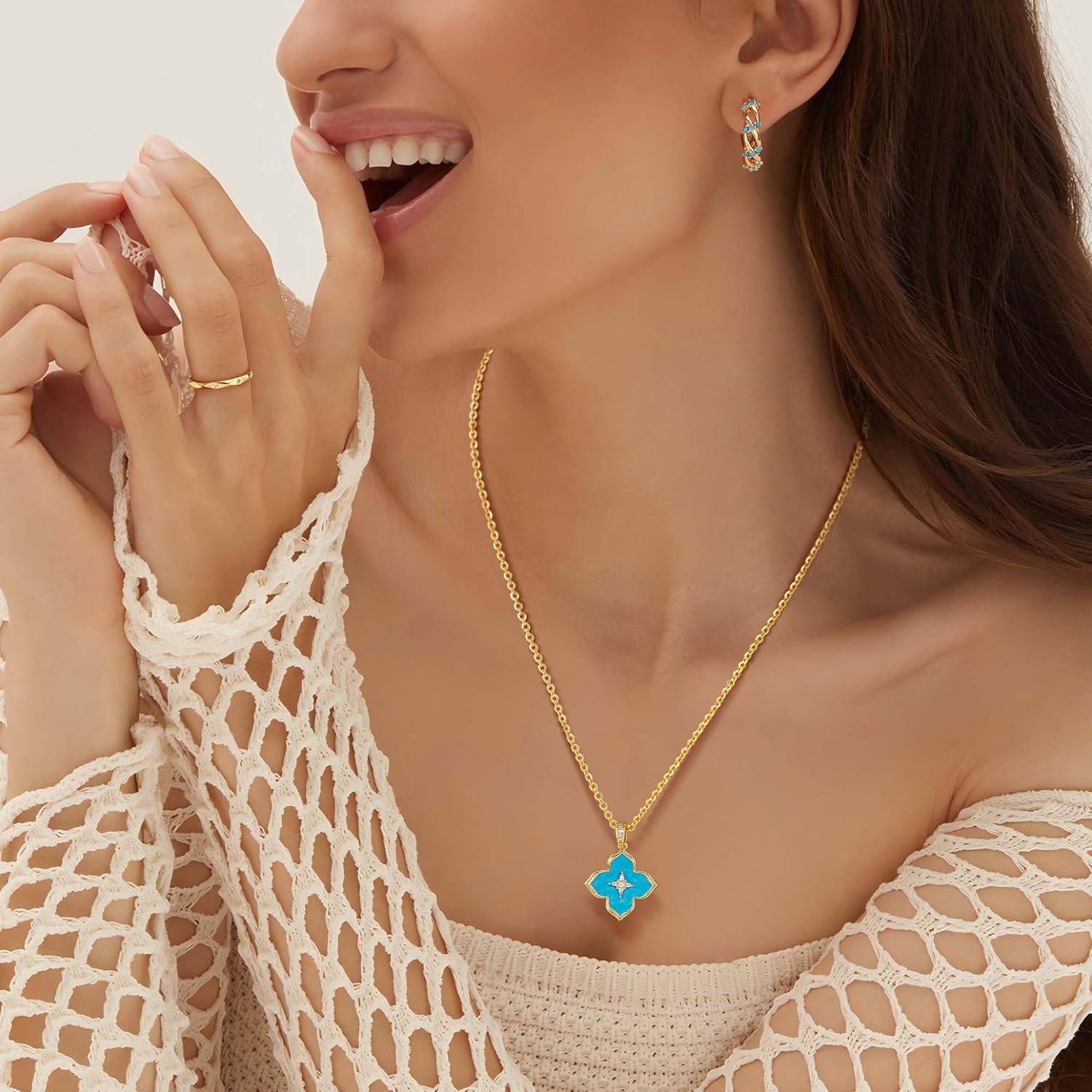 Fettero 2 Sided Gold Clover Necklaces for Women Gold Charm Necklace Jewelry | Trendy Lucky Pendant 14K Gold Plated Cross Jewelry Gifts