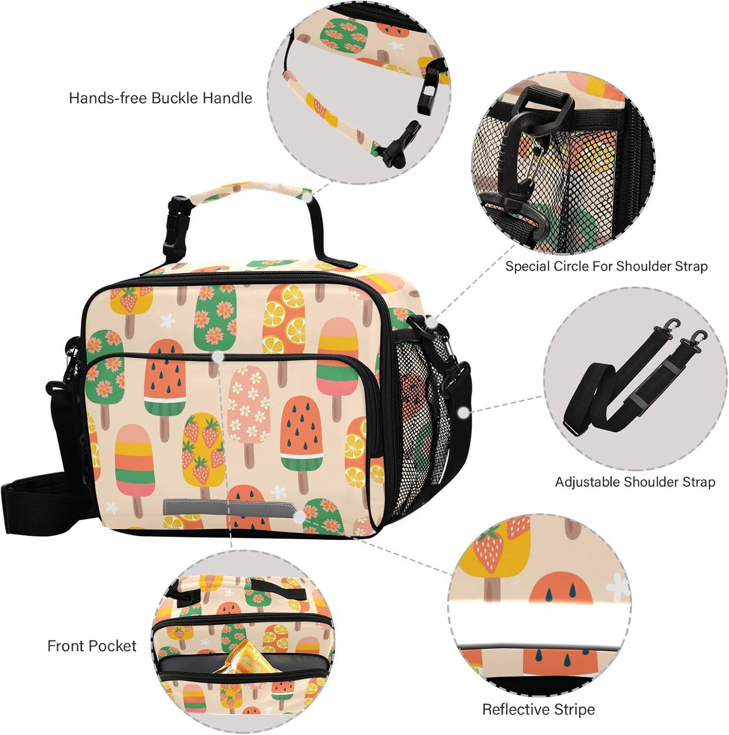 Fruity Floral Beige Lunch Bag for Kids Insulated Lunch Tote Bags with Detachable Shoulder Strap Lunch Box for Boys Girls Wowen