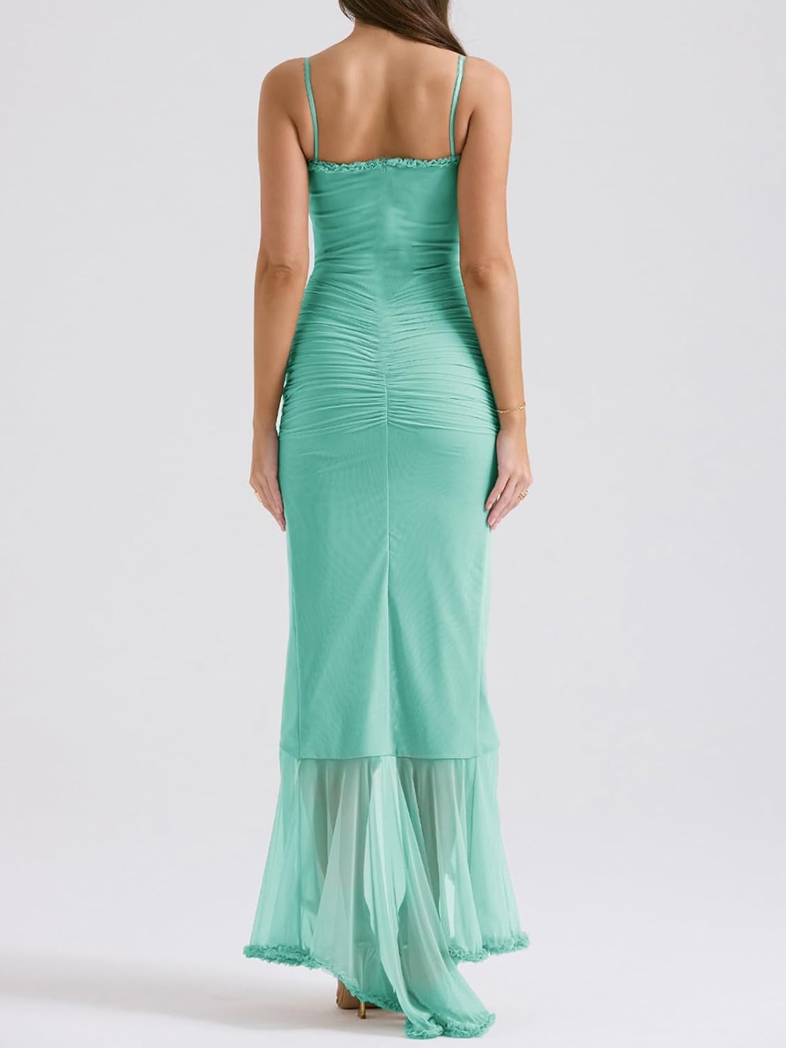 houstil Women’s Strap Ruffle Casual Summer Dress Mesh Beach Party Maxi Cocktail Evening Holiday Wedding Guest Dresses