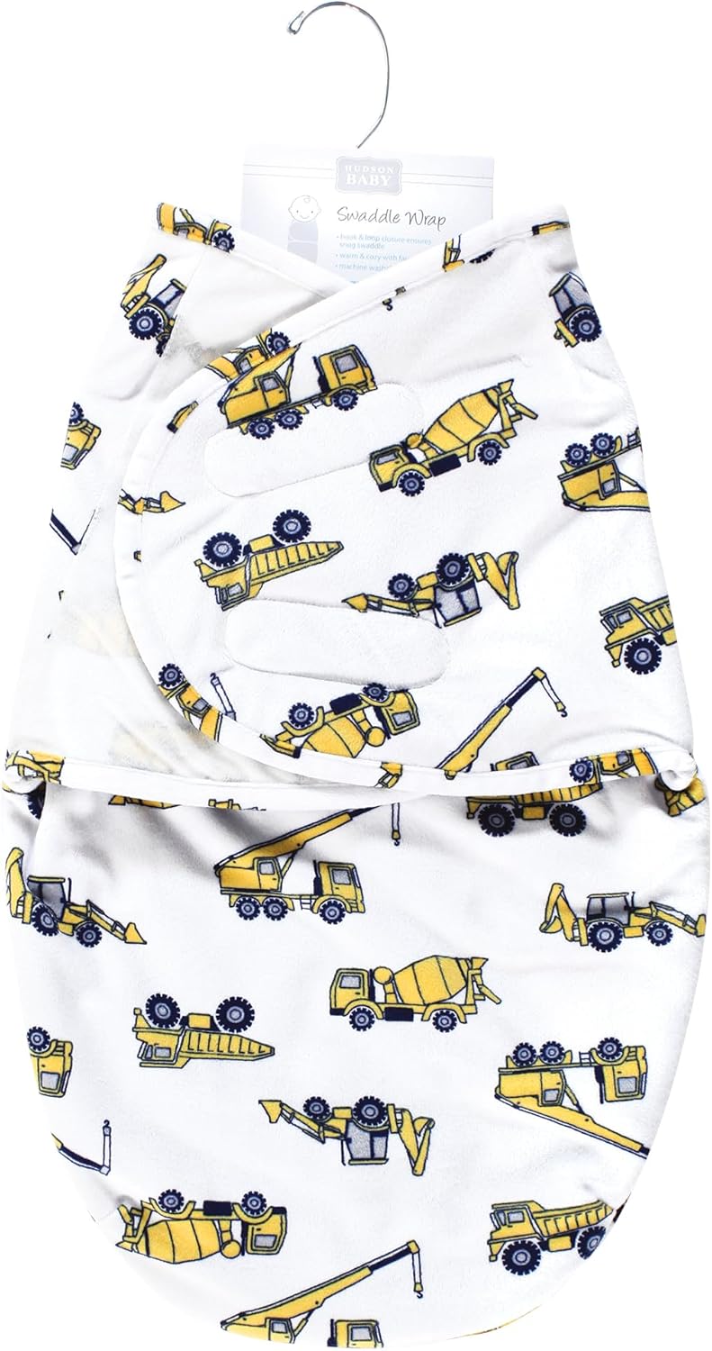 Hudson Baby Unisex Baby Plush Faux Fur Swaddle Wrap, Construction, 0-3 Months