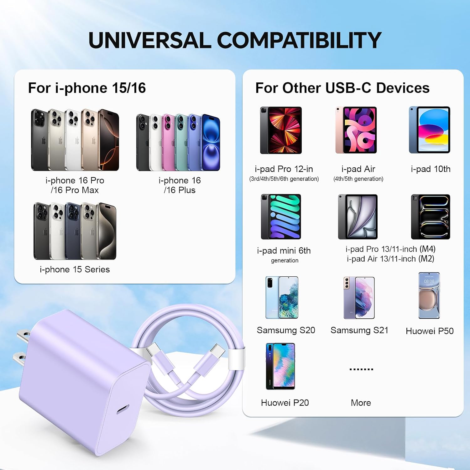 【Safe and reliable】 Type C wall charger block is equipped with PD 3.0 and a built-in multi-protection system, i Phone speed charger can intelligently adjust current to meet your device needs, avoiding overvoltage, charging, overheating, etc., ensuring a fast and safe charging process for your phone.