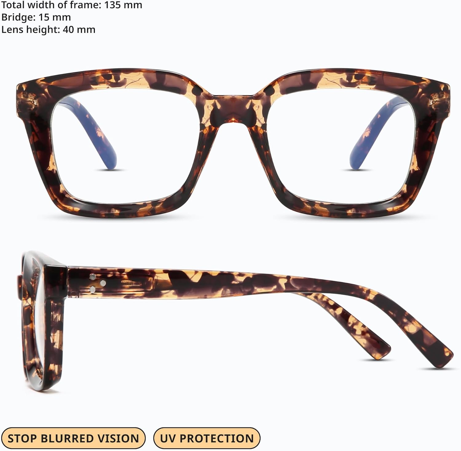 COMFORT FOR DAILY USE: Crafted from durable TR90 material, our trendy bluelight glasses womens ensure long-lasting comfort. The high-transmittance lenses (98%) on the blue light blocking glasses help keep your eyes relaxed.