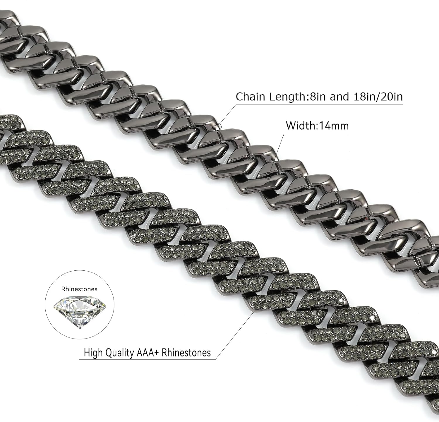 JUNVirtuous 2 Pieces Cuban Link Chain for Men Cuban Diamond Chain Necklace and Bracelet Iced Out Miami Cuban Hip Hop Jewelry
