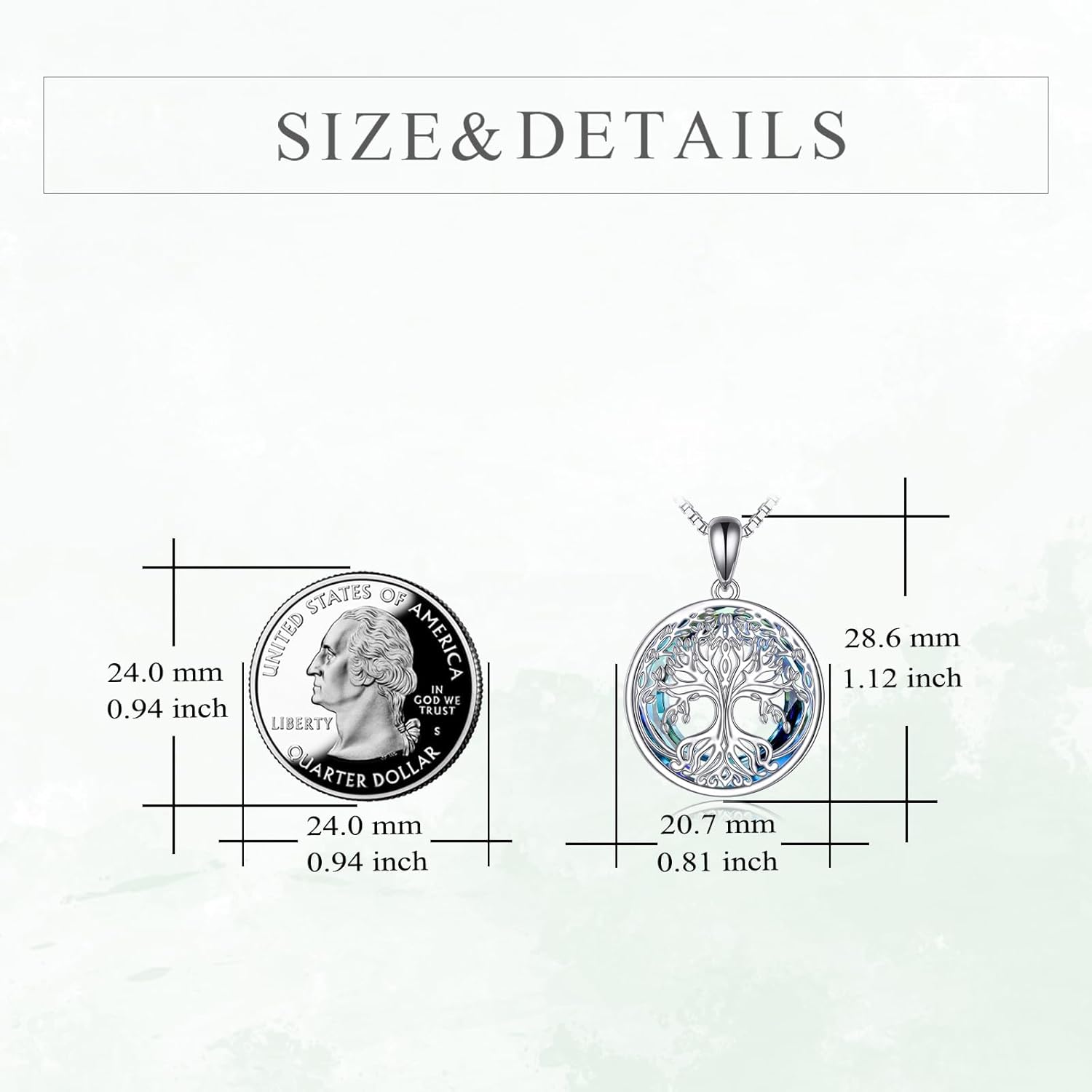 KZX Tree of Life Necklace 925 Sterling Silver Tree of Life Crystal Necklace Tree Pendant Necklace Tree of Life Jewelry for Women Men