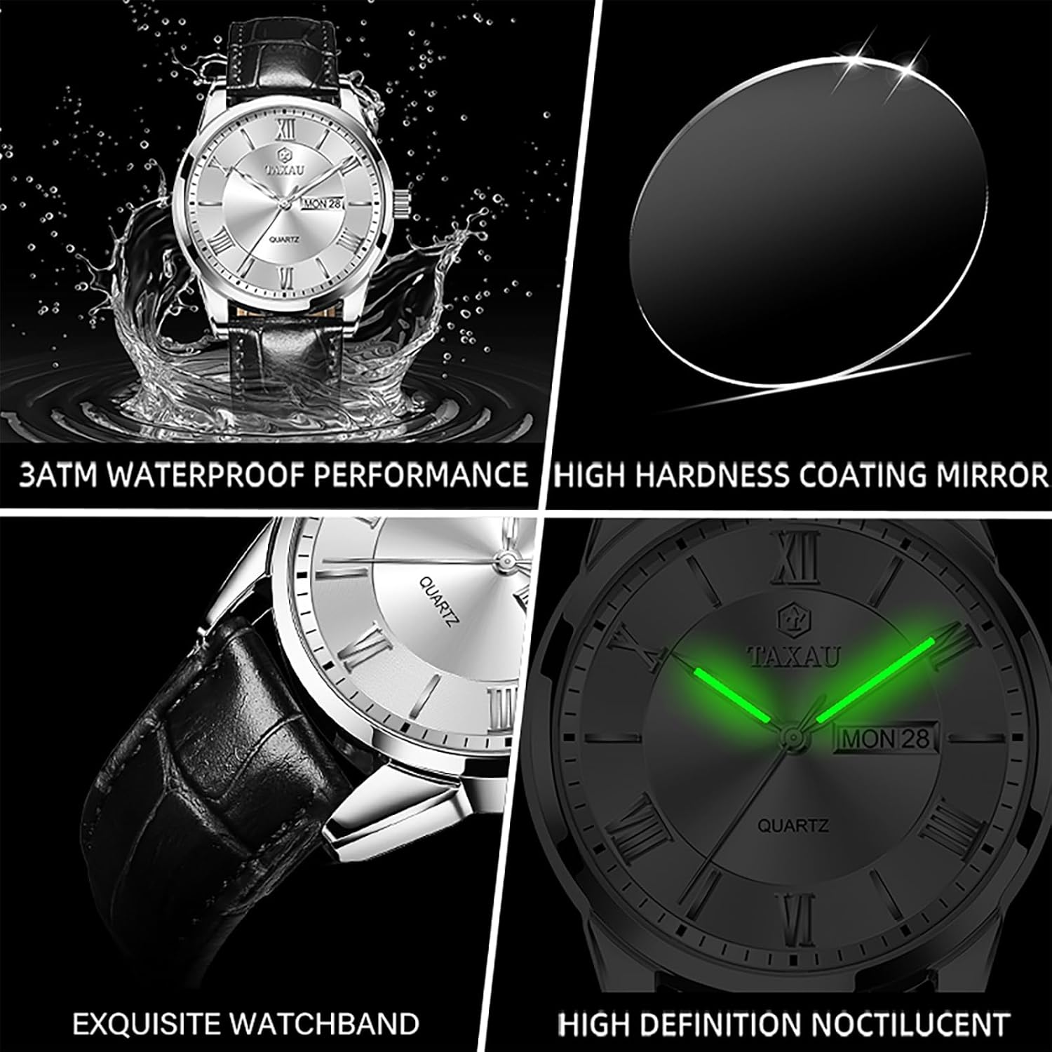 Men’s Watches – Fashion Casual Leather Watches Big Face Easy Read Arabic Numerals Quartz Analog Luminous Waterproof Day Date Classic Luxury Dress Wrist Watches