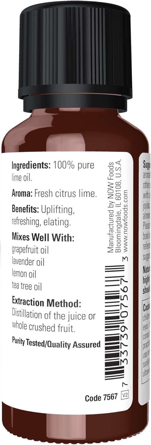 NOW Essential Oils, Lime Oil, Citrus Aromatherapy Scent, Cold Pressed, 100% Pure, Vegan, Child Resistant Cap, 1-Ounce