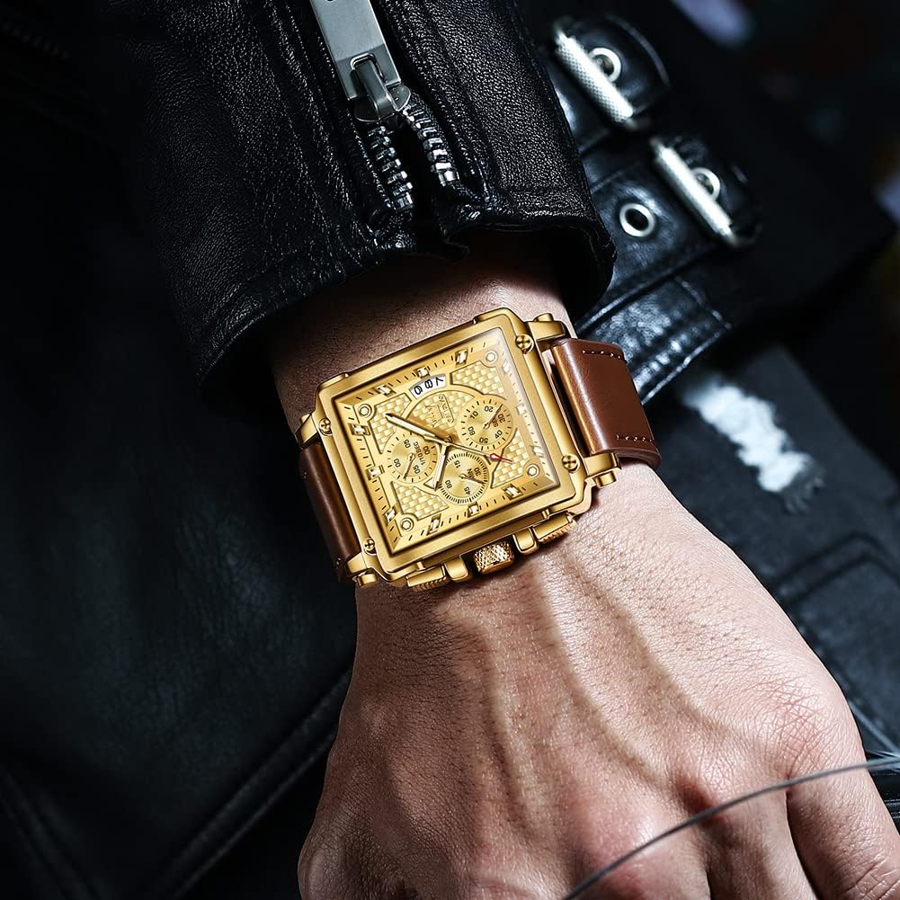 OLEVS Men’s Casual Leather Watch, Big Face Chronograph Watch for Men, Fashion Easy to Read Dress Watch, Men’s Waterproof Luminous Date Analog Watch, Gold/Black/White/Blue Dial