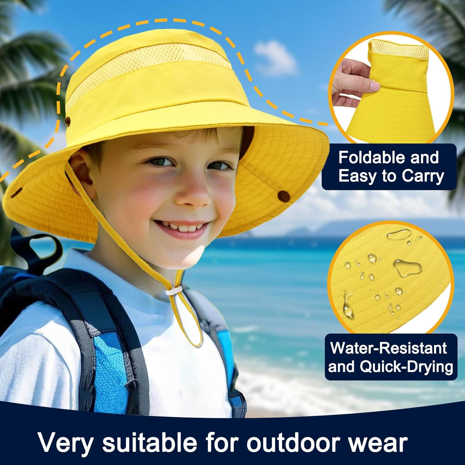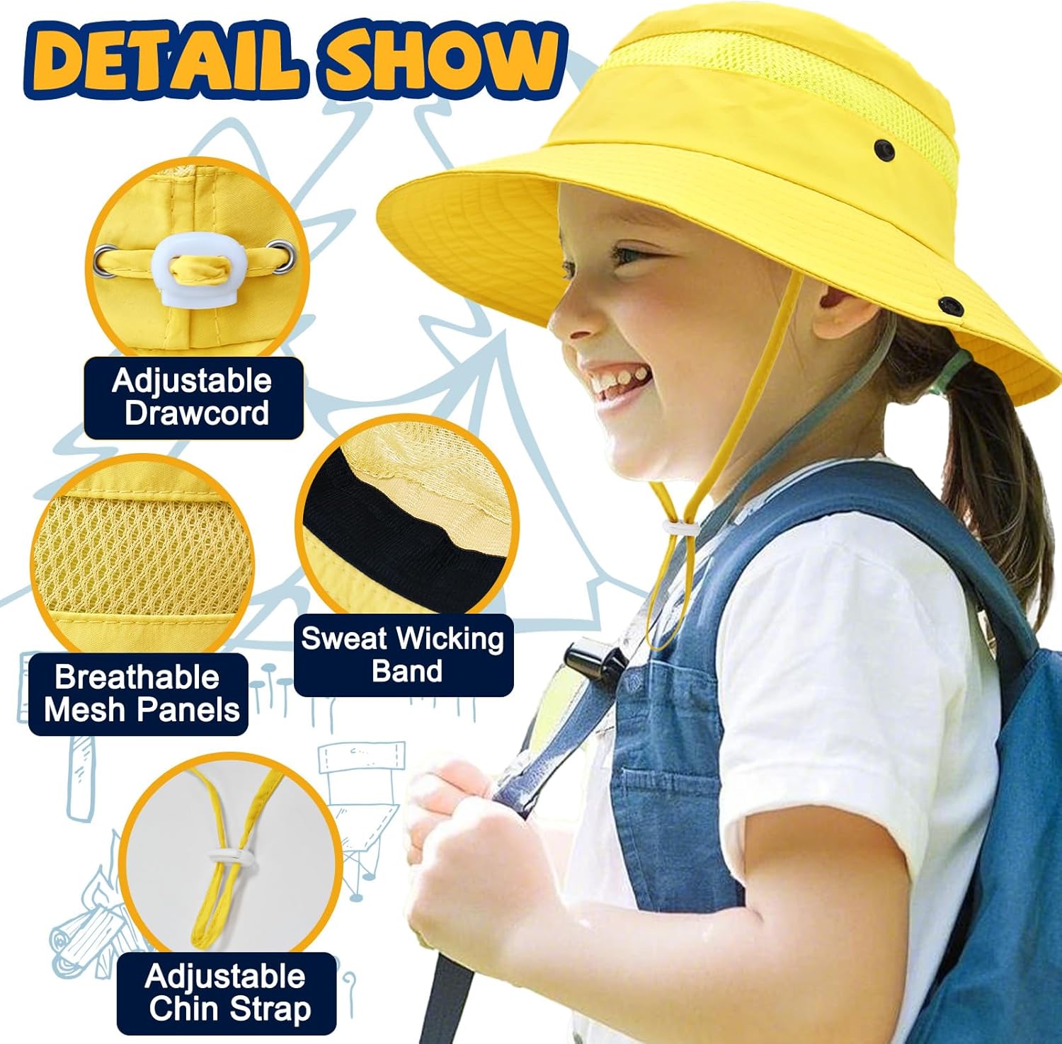Outdoor Kids Sun Hat for Boys Girls Wide Brim Mesh Bucket Hat UPF 50+ Sun Protection Breathable Summer Fishing Safari Hat