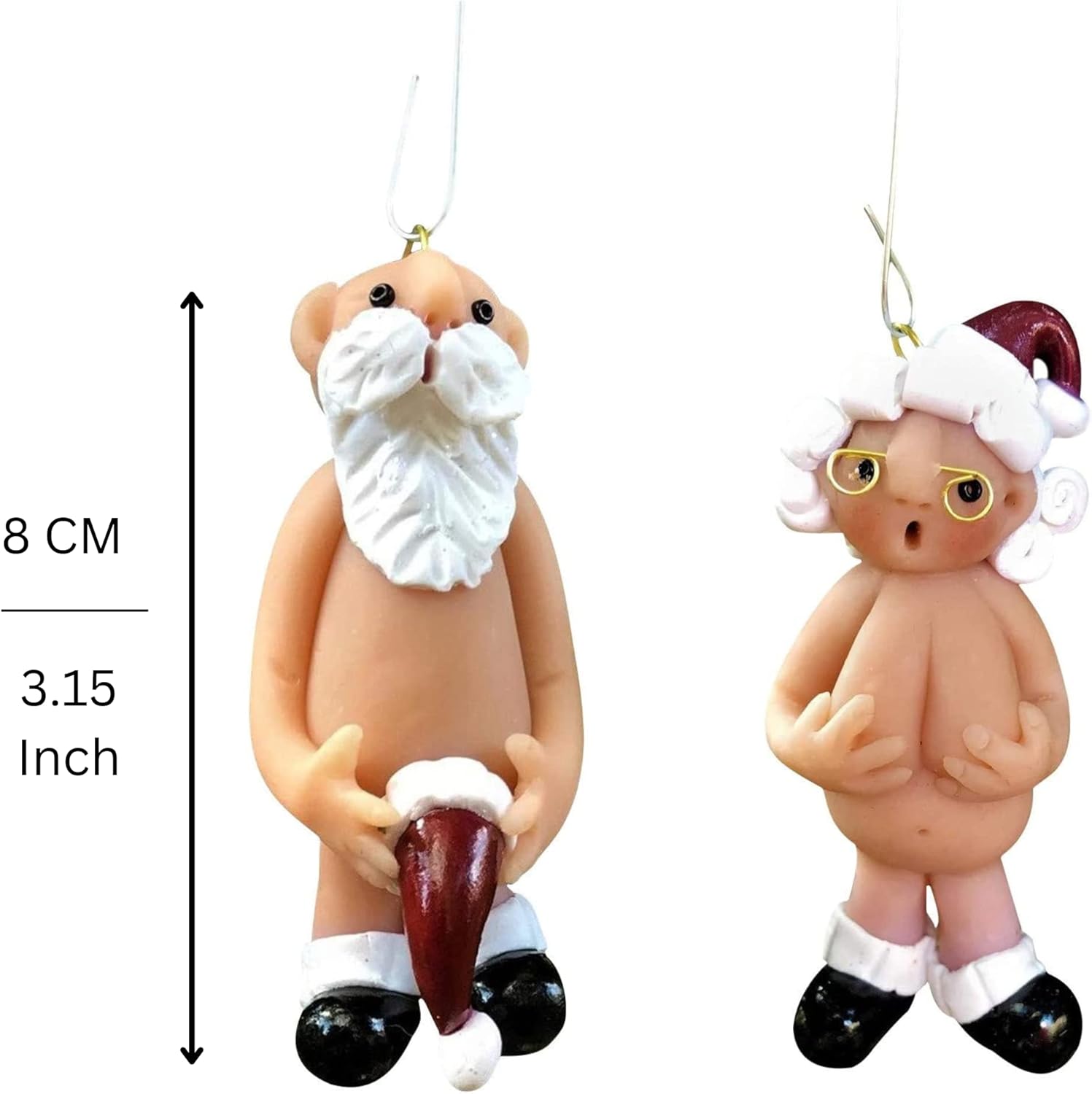 Persepolis 2 Piece SET Christmas Decorations Naughty Santa Ornament Christmas Tree Hanging Ornaments Naked Santa Funny Xmas Party Decor (8 CM)