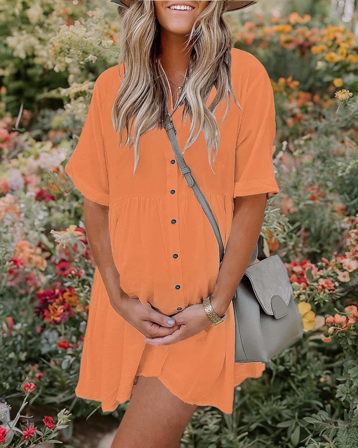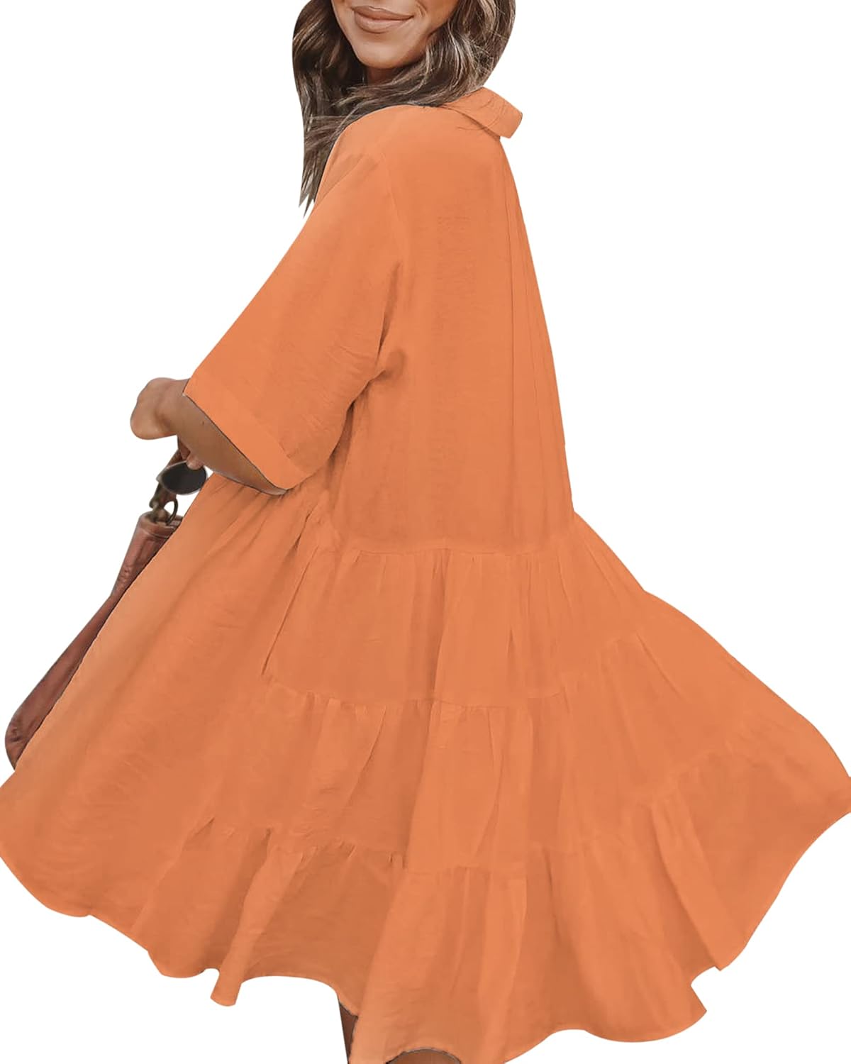 PYGFEMR Women’s Short Sleeve Babydoll Dress Button Down Dresses with Pockets