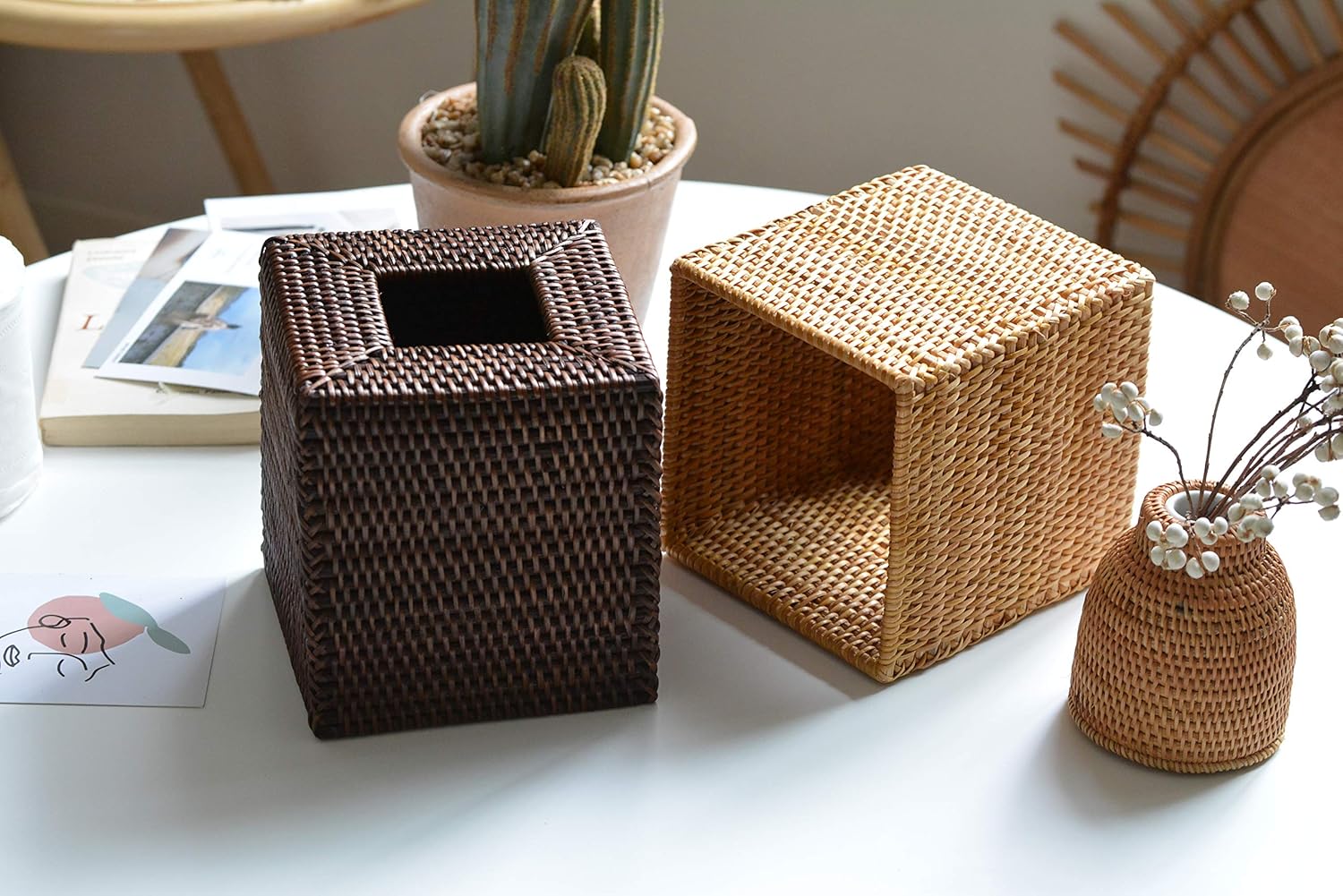 【Material】 Made with durable Eco-friendly Rattan, add a dash of style to your living space with this tissue box cover.
