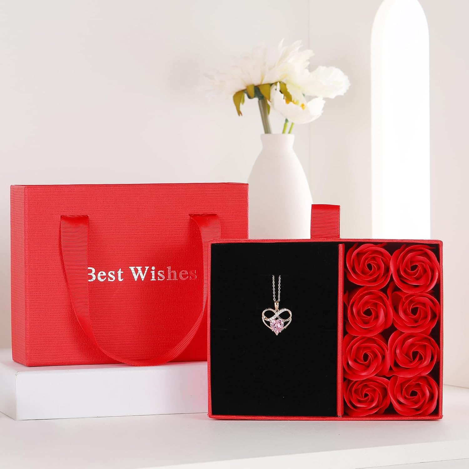 Rose Gold Birthstone Necklaces Heart Birthstone Pendant Necklaces For Women Valentine’s Day Mother’s Day Anniversary Christmas Gifts