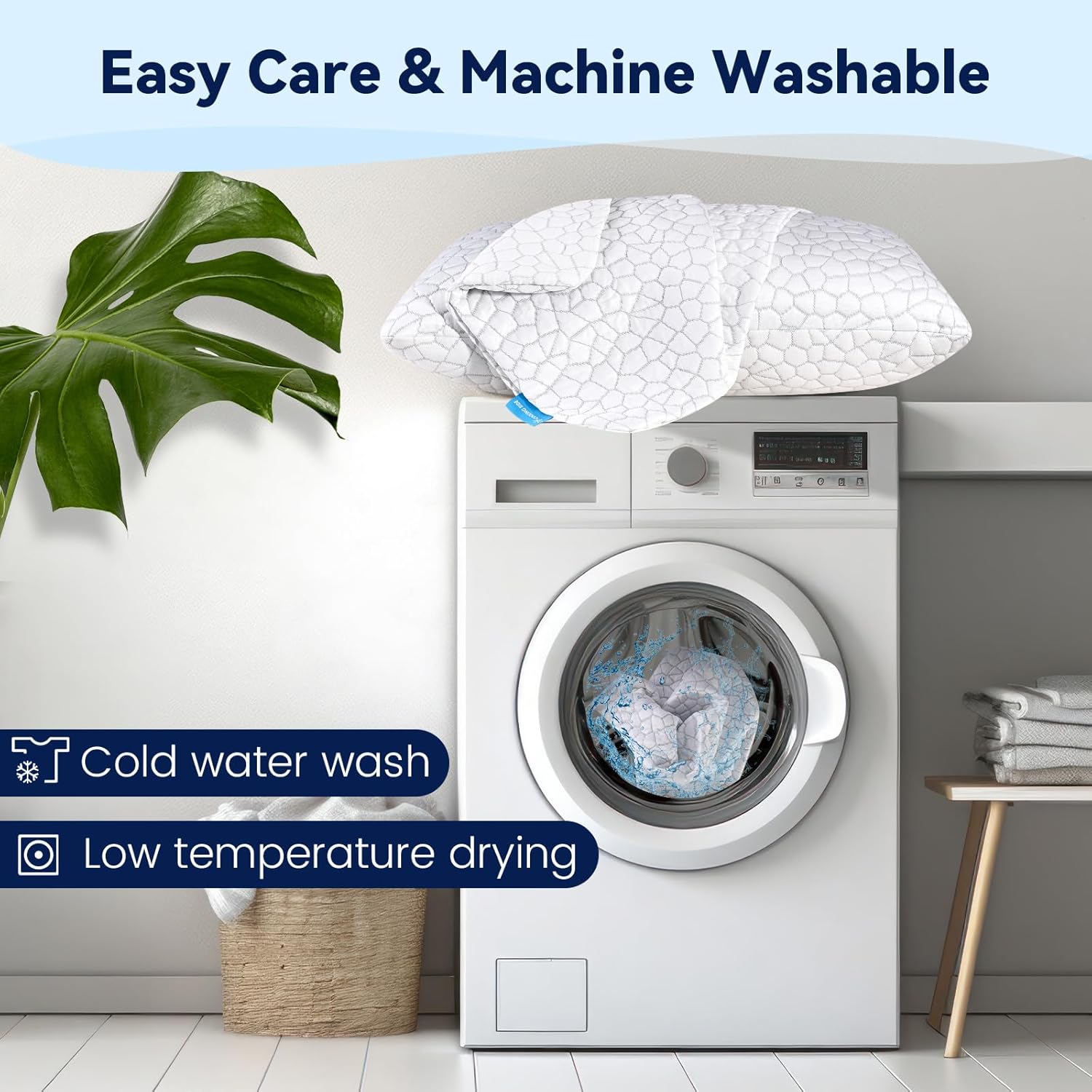 【Durable and Machine Washable Cover-Easy Care】 For added convenience, the removable and machine-washable cover makes cleaning effortless, ensuring your cooling memory foam pillows remain fresh, clean, and ready for use.Transform your nights with this durable, adjustable, and cooling pillow set, and pillow for side sleepers, pillows for bed and enjoy a restful, rejuvenating sleep every night!