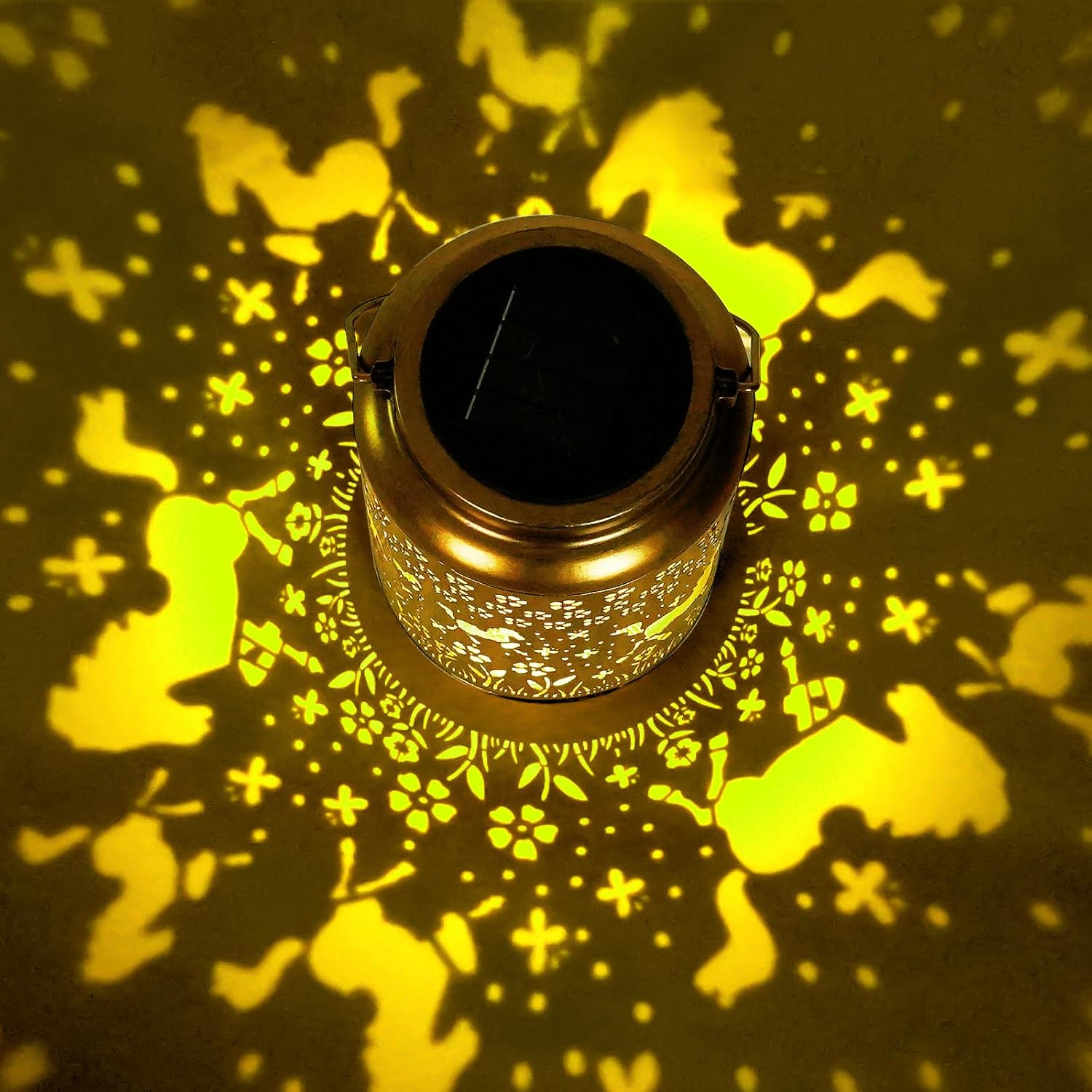 Elegant Decorative Design:Inspired by timeless artistry, our solar outdoor horse lanterns boast a vintage-inspired golden copper finish and intricate hollow-cut metal detailing. As darkness falls, the solar lanterns outdoor cast a radiant, warm glow through their delicate patterns, adorned with graceful horse motifs that dance across surfaces, transforming gardens, patios, or pathways into a captivating oasis of elegance.