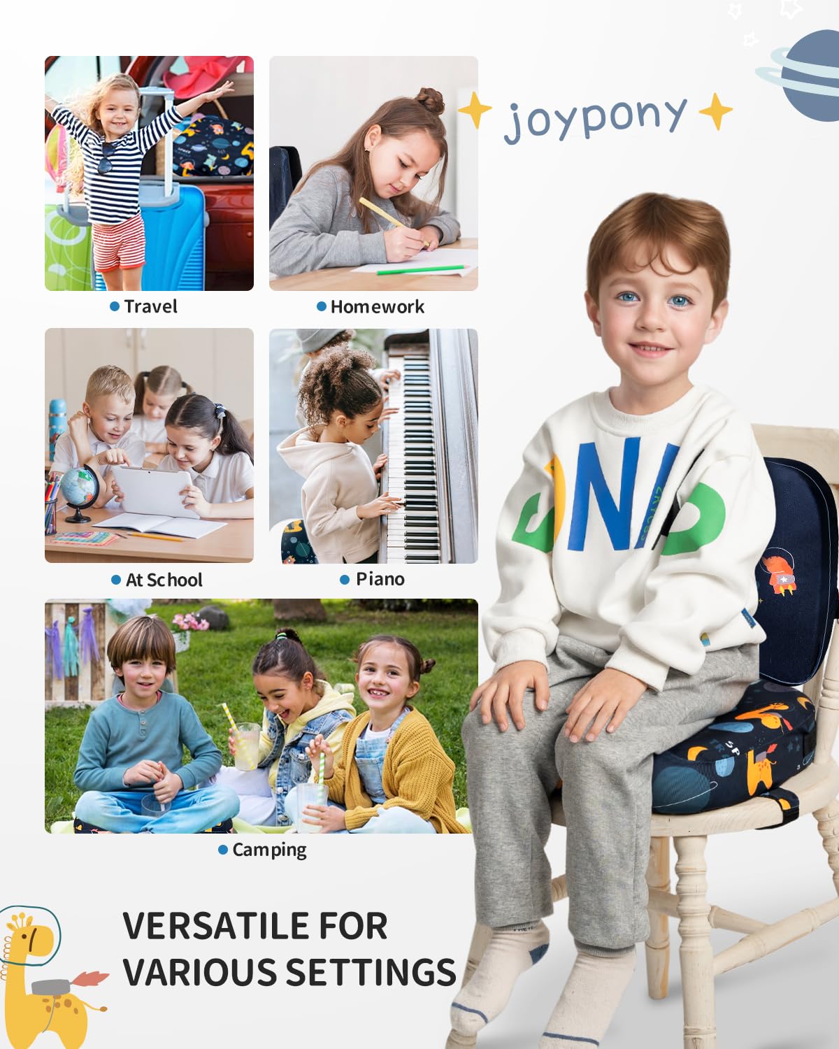 [UPDATED ERGONOMIC DESIGN] – The Joypony booster seat for dining table and kitchen chair is specially designed to support your child’s growth and development. The contoured shape of the booster cushion fits perfectly to your child’s developing hips and legs, providing strong support. The seat cushion is also wider than other models on the market, covering the entire surface of the chair more comprehensively. (SIZE: 13.39 x13 x 4 inch/34cm x 33cm x 10cm)