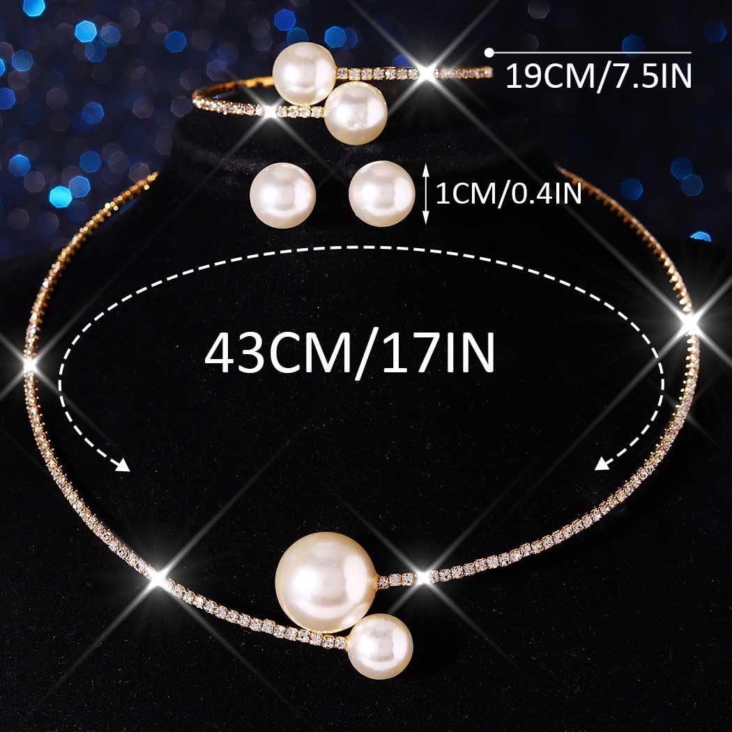 Unicra Pearl Bridal Wedding Jewelry Sets Silver Rhinestone Necklace Earrings Bracelet Set Prom Formal Costume Jewelry Set for Women and Brides