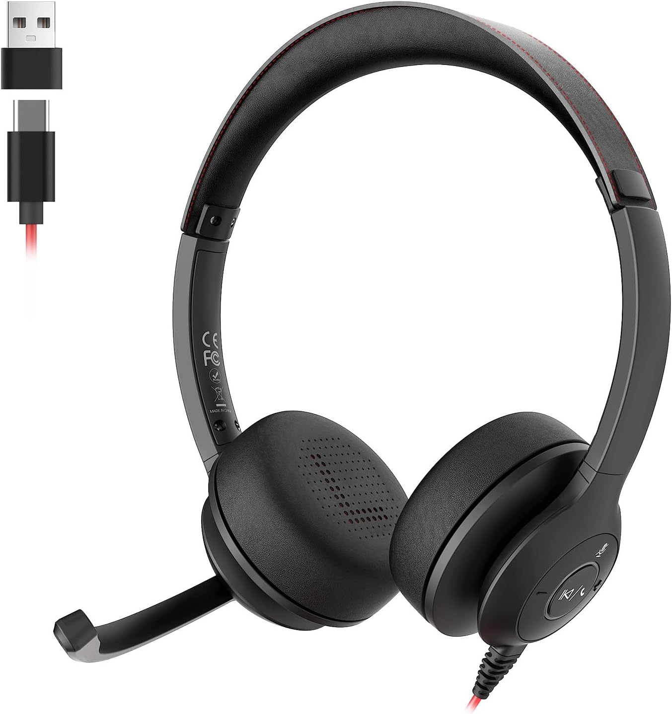 USB Headset with Microphone for PC/Laptop, Wired Headphones with Noise Cancelling Mic, USB C & USB A, All-day Comfort, Lightweight Computer Headset for Home Office, Call Center, School, Remote Work