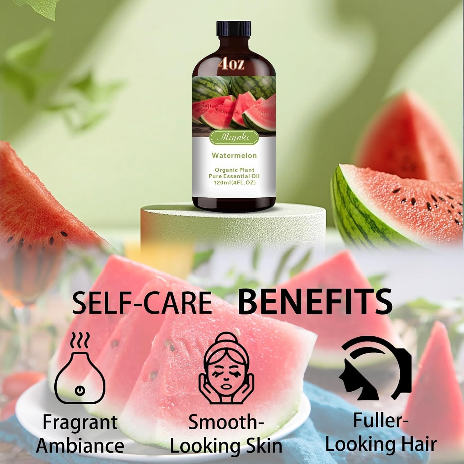Watermelon Essential Oil (4 oz/120 ml) with roll-on (10 ml) – 100% Natural, Aromatherapy, Diffuser, Massage, Relaxation, Stress Relief, Yoga, DIY Soap and Candle Making, Fragrance Oils, Spa, Gifts