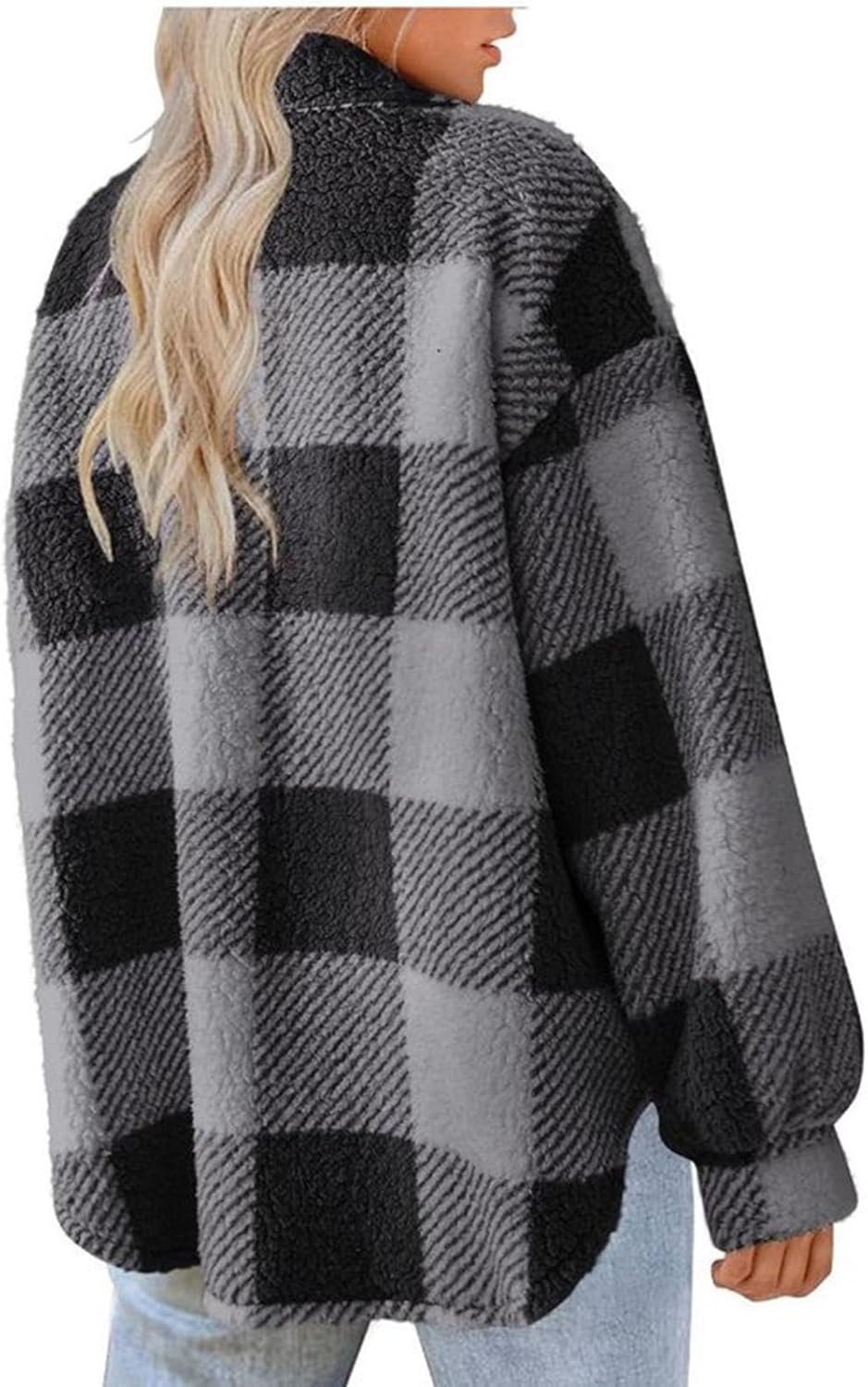 Womens Fuzzy Flannel Jacket Fall Fashion Sherpa Lined Plaid Shacket Jacket Long Sleeve Button Down Fleece Hoodies+
