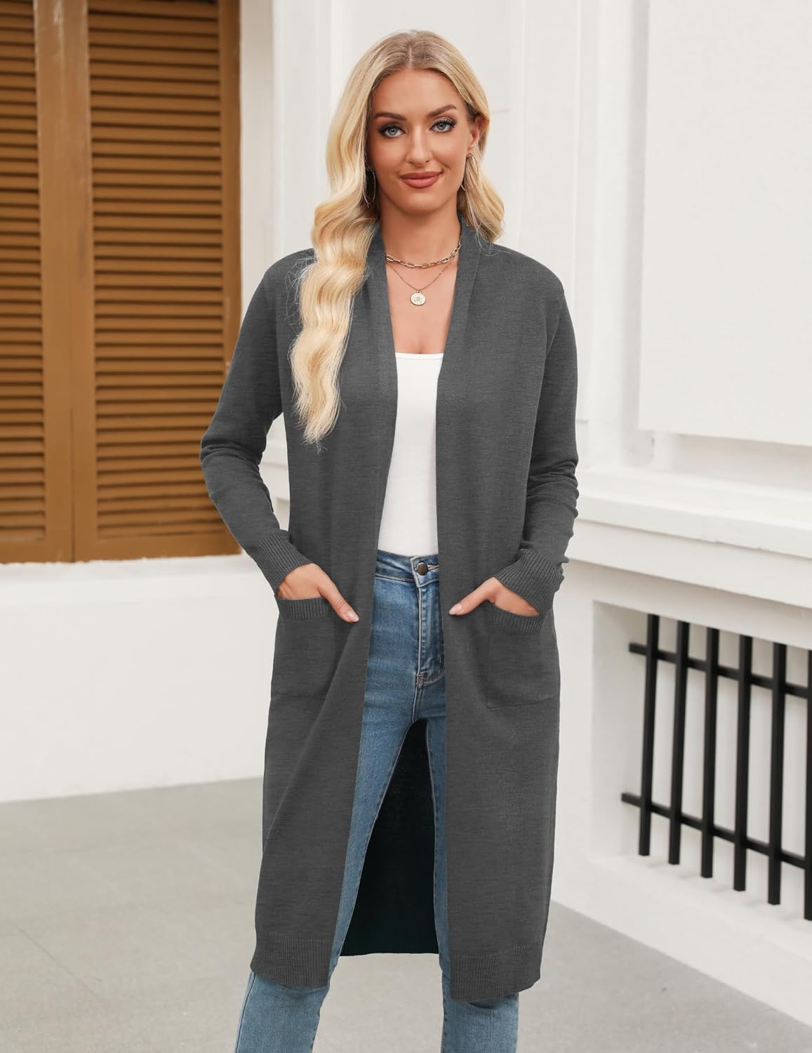 Zeagoo Women’s Long Cardigan Sweaters Lightweight Sweater Long Sleeve Open Front Casual Knit Duster Cardigans with Pocket